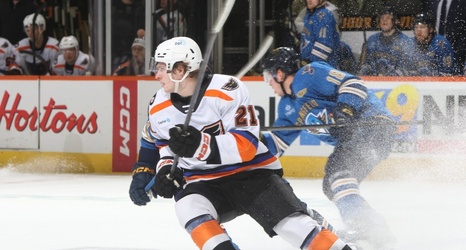 The Phantoms are working with a lineup which has already been a bit depleted due to call-ups to the NHL — missing all of Carl Grundstrom, Denver Barkey, and now Adam Ginning — and it’s just getting thinner. This weekend saw them on the road for a pair of games in Springfield and Providence, and quickly down two of their top players.